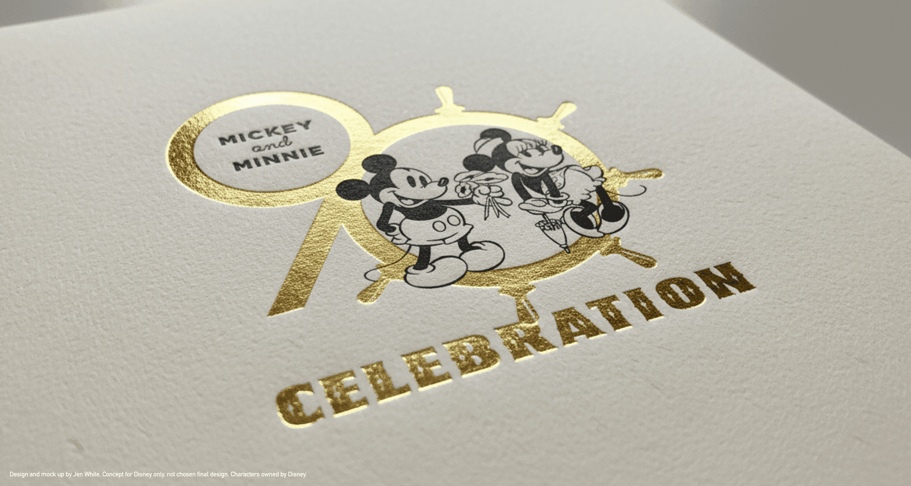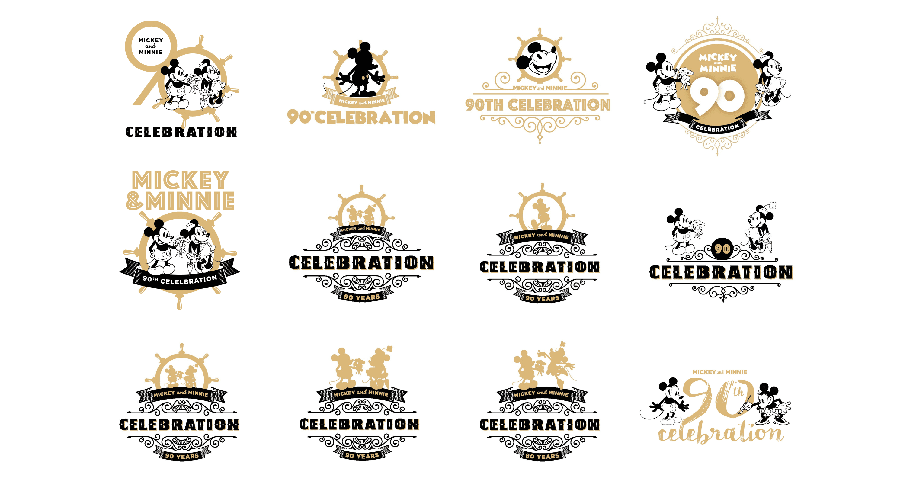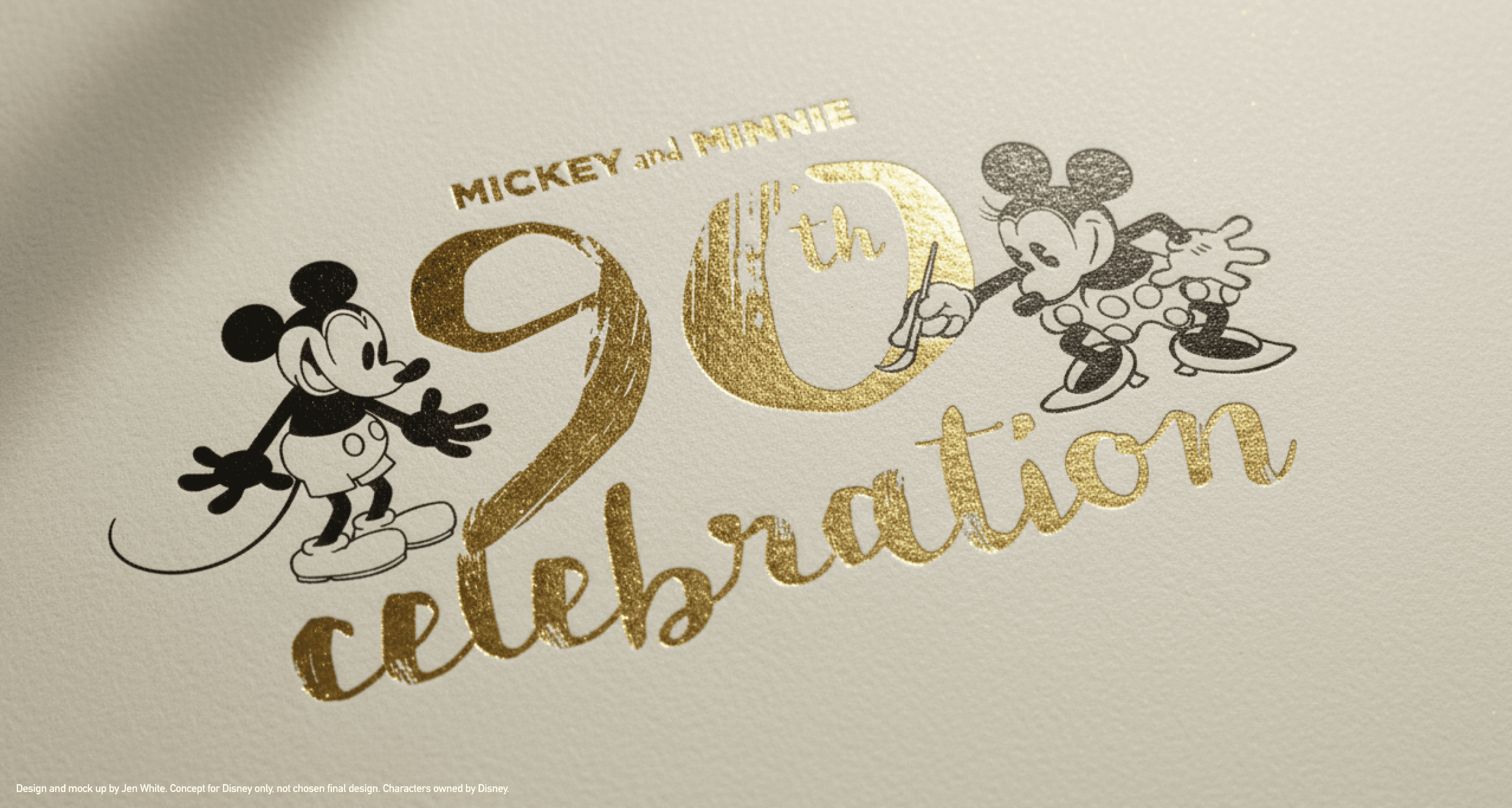 Disney’s Creative Director reached out for a fast-turnaround project to design a commemorative logo celebrating Mickey and Minnie’s 90th anniversary. The brief included historical references to the characters, along with visual inspiration from past Disney projects—such as preferred banner styles and typography.