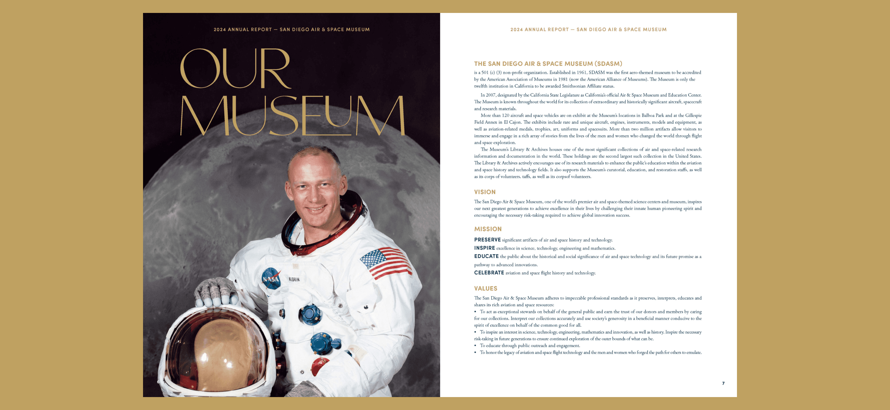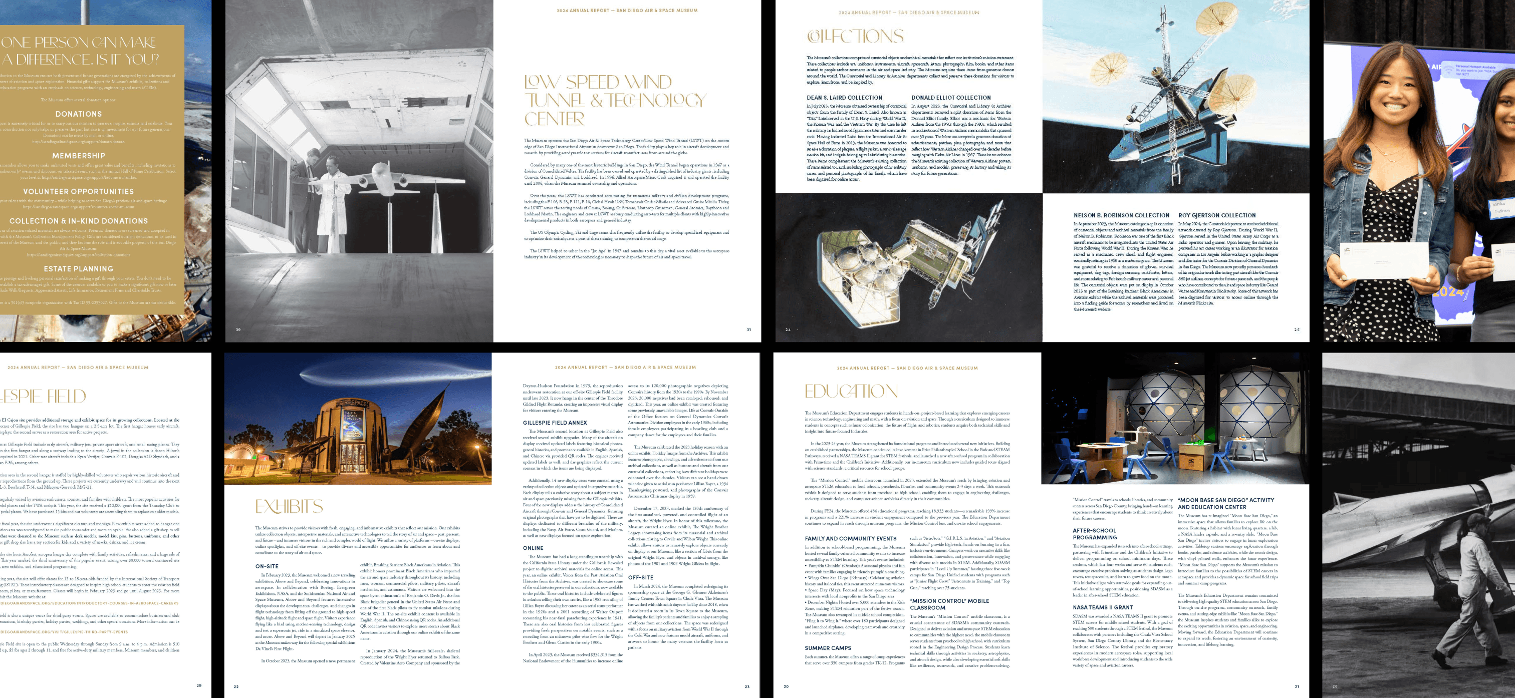 The San Diego Air & Space Museum’s annual report needed to do more than communicate financial performance—it needed to inspire belief. This project reimagined the annual report as a brand storytelling artifact, one that captures the wonder of aviation and space while reinforcing the museum’s mission, momentum, and impact.